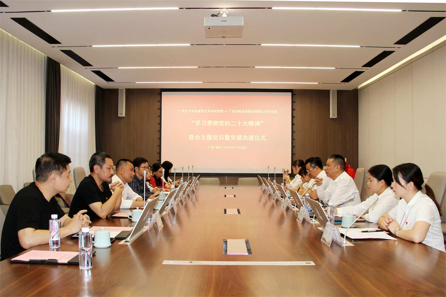 2022年11月28日,广西艺术学院建筑艺术学院党委与广西leyu装饰集团有限公司党支部,开展“学习贯彻党的二十大精神”联合主题党日暨党建共建仪式;同时,广西艺术学院建筑艺术学院与广西leyu装饰集团有限公司,举行了“联合共建校外实践教育基地”揭牌仪式。