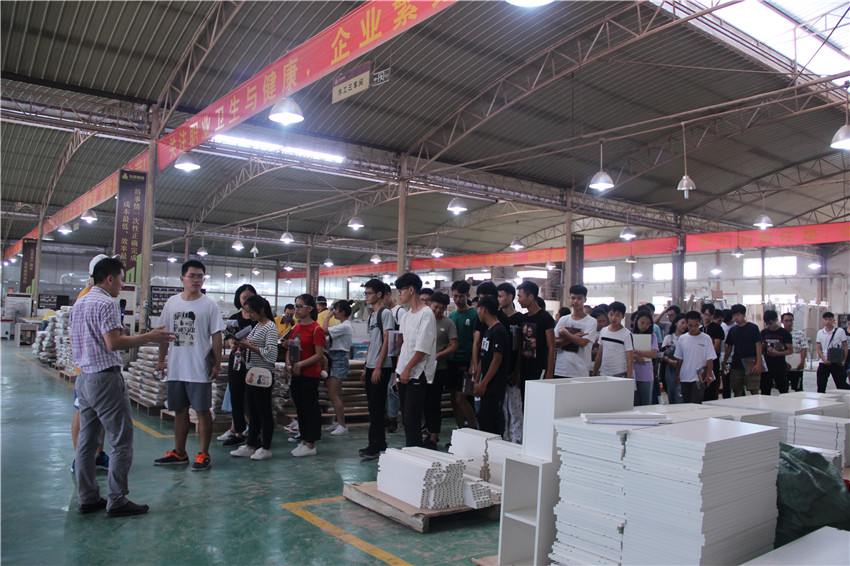 同学们不时地提出疑问,生产中心化身现场教学基地,带给同学们建筑装饰行业初体验。