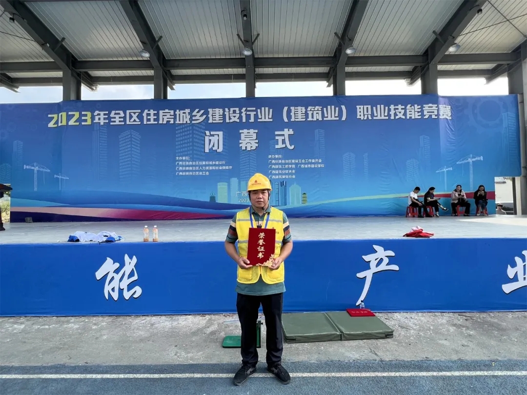 2023年11月3日,由广西壮族自治区住房和城乡建设厅,广西壮族自治区人力资源和社会保障厅,广西壮族自治区总工会主办的,2023年全区住房城乡建设行业(建筑业)职业技能竞赛圆满举办。leyu工匠雷兴欢同志获得精细木工项目冠军。